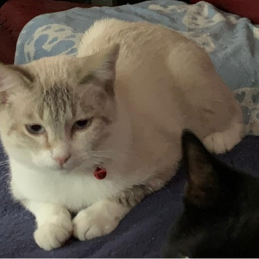 Gatito color Beige con manitas blancas y ojos azules, colita con anillos color café, por eso lo llamamos “Castorcito “, un año de edad