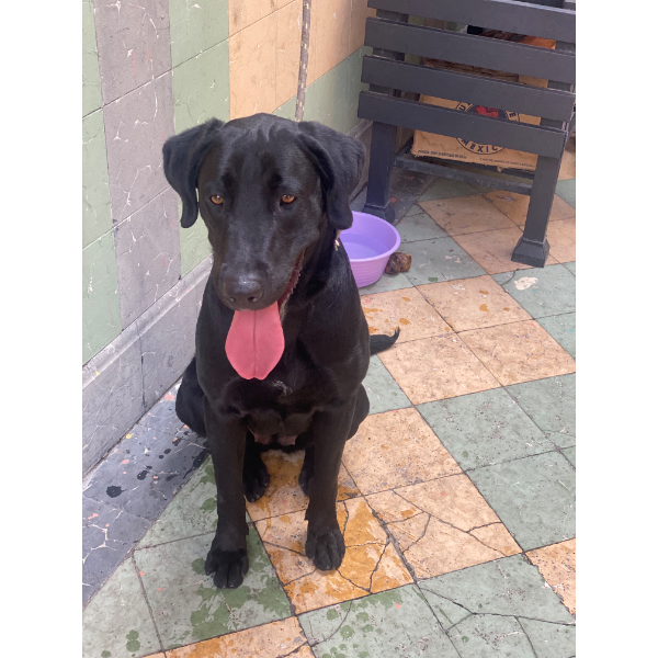 Buenas tardes , Encontramos esta cachorrita en la col tlaxpana . Parece una cruza de labrador y es muy dócil , tenia puesto su collar , y la soga que lo sostiene .