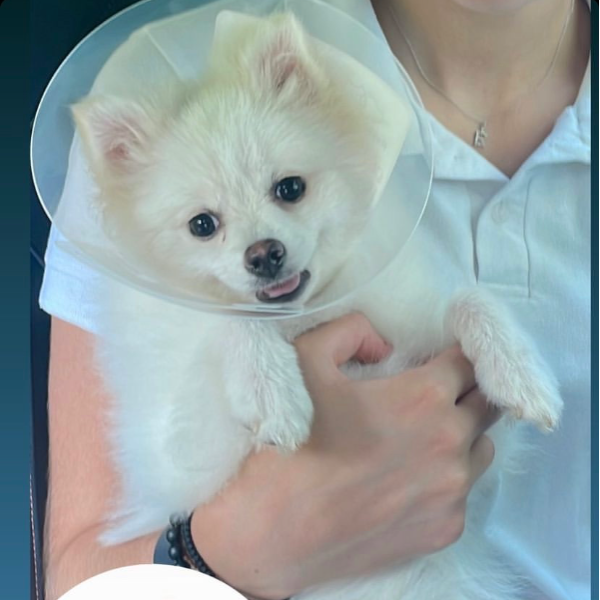 Necesita curaciones y antibiótico, recién operado no puede cruzarse, tiene un collarín acolchonado color gris