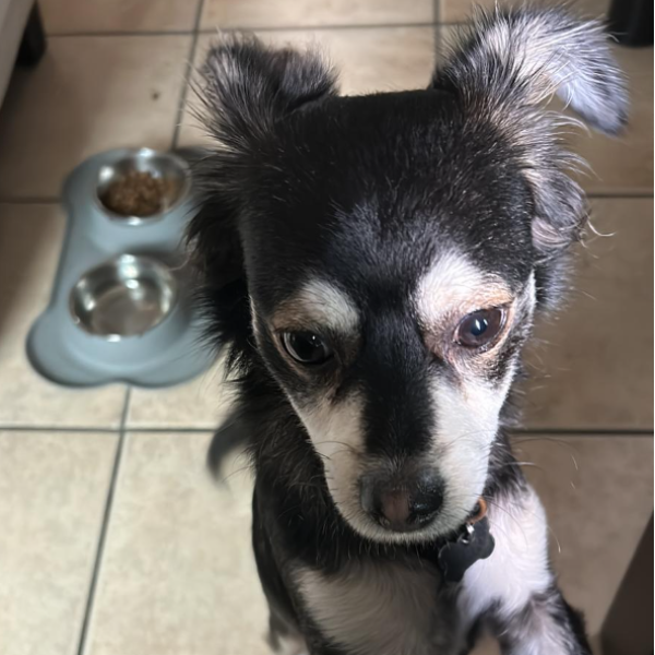 Color negro con Blanco, trae collar con su nombre y informacion con telefono donde comunicarse
