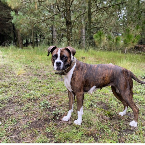 Chabela se salió de casa el sábado 24 de febrero al medio día, es una boxer que tiene sus orejas y cola completas, solo traía un collar rosa.