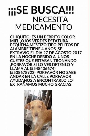 NECESITA MEDICAMENTO TIENE 4 AÑOS PELITOS DE ALAMBRE,COLOR MIEL ,OJOS VERDES