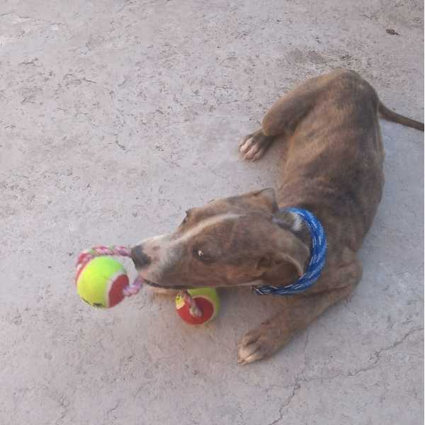 Edad aprox 7 meses, recientemente habia sido rescatado, tiene secuelas de maltrato, sus movimientos son un poco torpes, tiene un ligero temblor en una patita delantera, se le vió cerca de la cancha de futbol detrás del Fracc. Portal Ojo de agua.