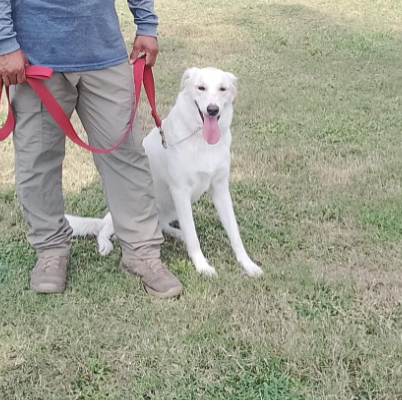 Soy IYARI* hembra, tamaño mediano, raza Mestiza , cruza de Labrador, color blanca con color miel en el lomo. Tengo año y medio y uso un collar de color naranja sin plaquita. Soy muy juguetona y a veces me dan miedo las personas que no conozco.